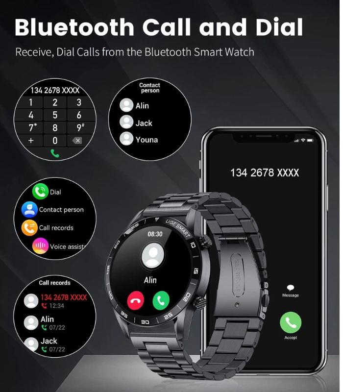 Lige BW01821 Luxury Smart Watch – Stainless Steel Bluetooth Calling Watch with Health & Fitness Tracker