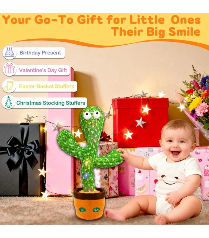 In the early stages of a child's development, interaction is key. This cactus serves as a fantastic early education tool. When your baby babbles or speaks, the cactus repeats the sounds back in a funny tone. This encourages toddlers to talk more, helps with their hearing development, and keeps them engaged without needing a mobile screen.